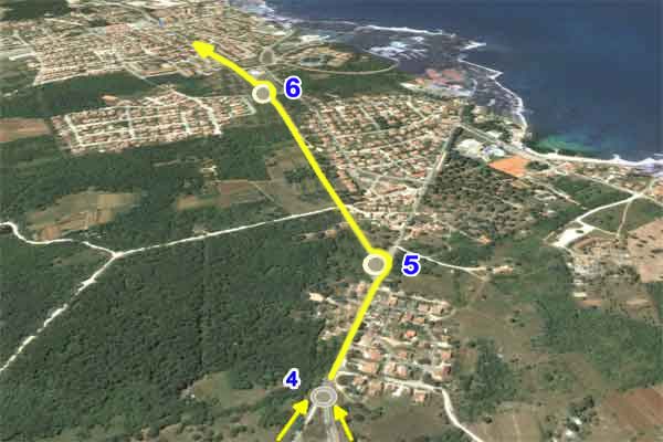 next roundabout N.5, through next roundabout N.6 and finaly at